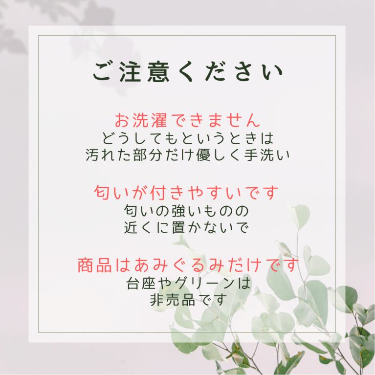 毛糸の素材的に優しく手洗いすることも可能ですが、中綿が崩れる可能性があるためおすすめしておりません。