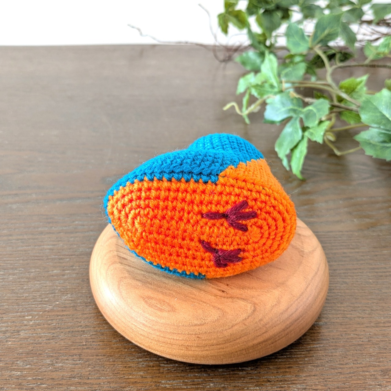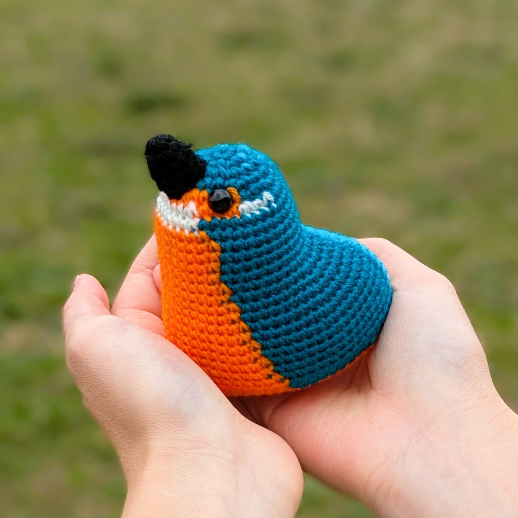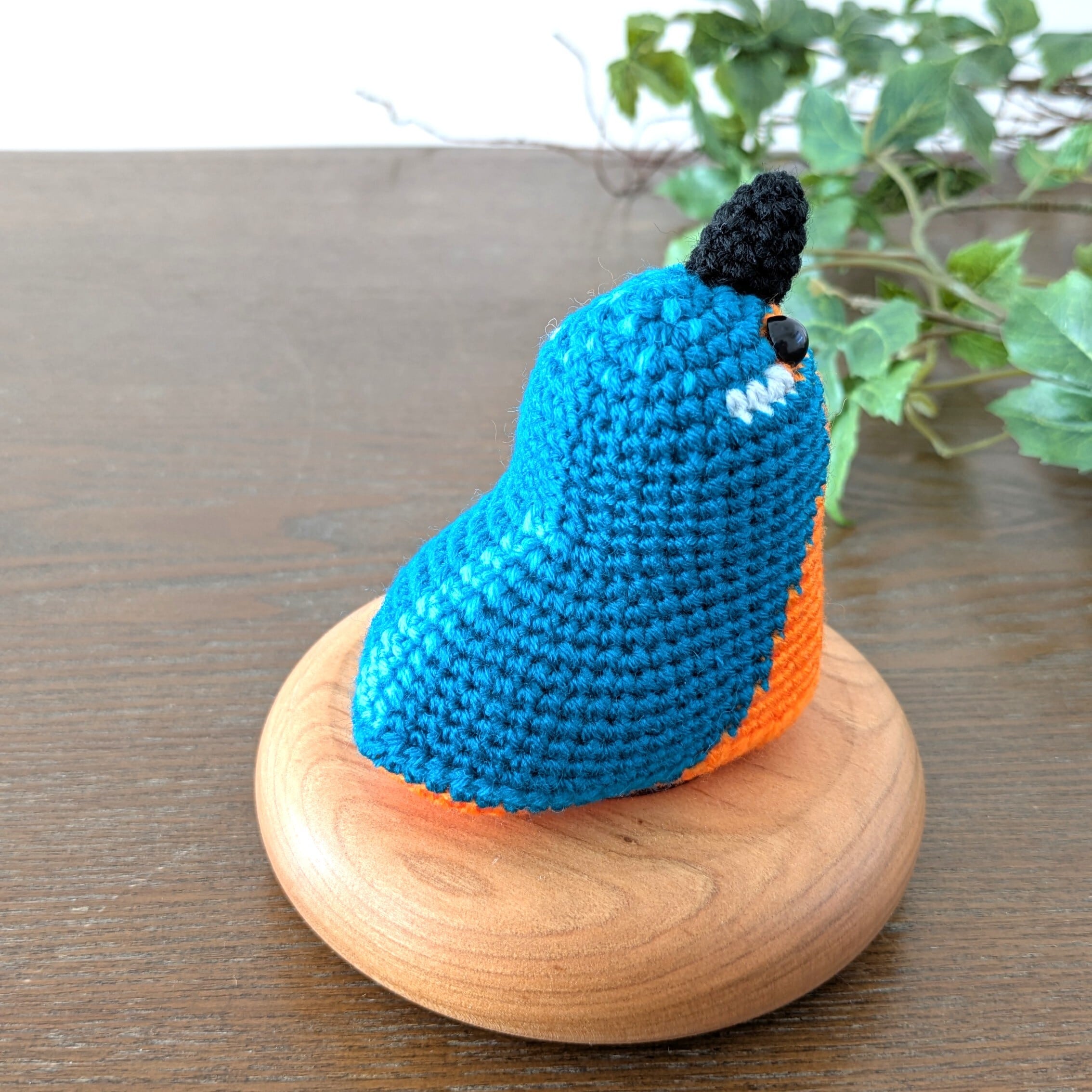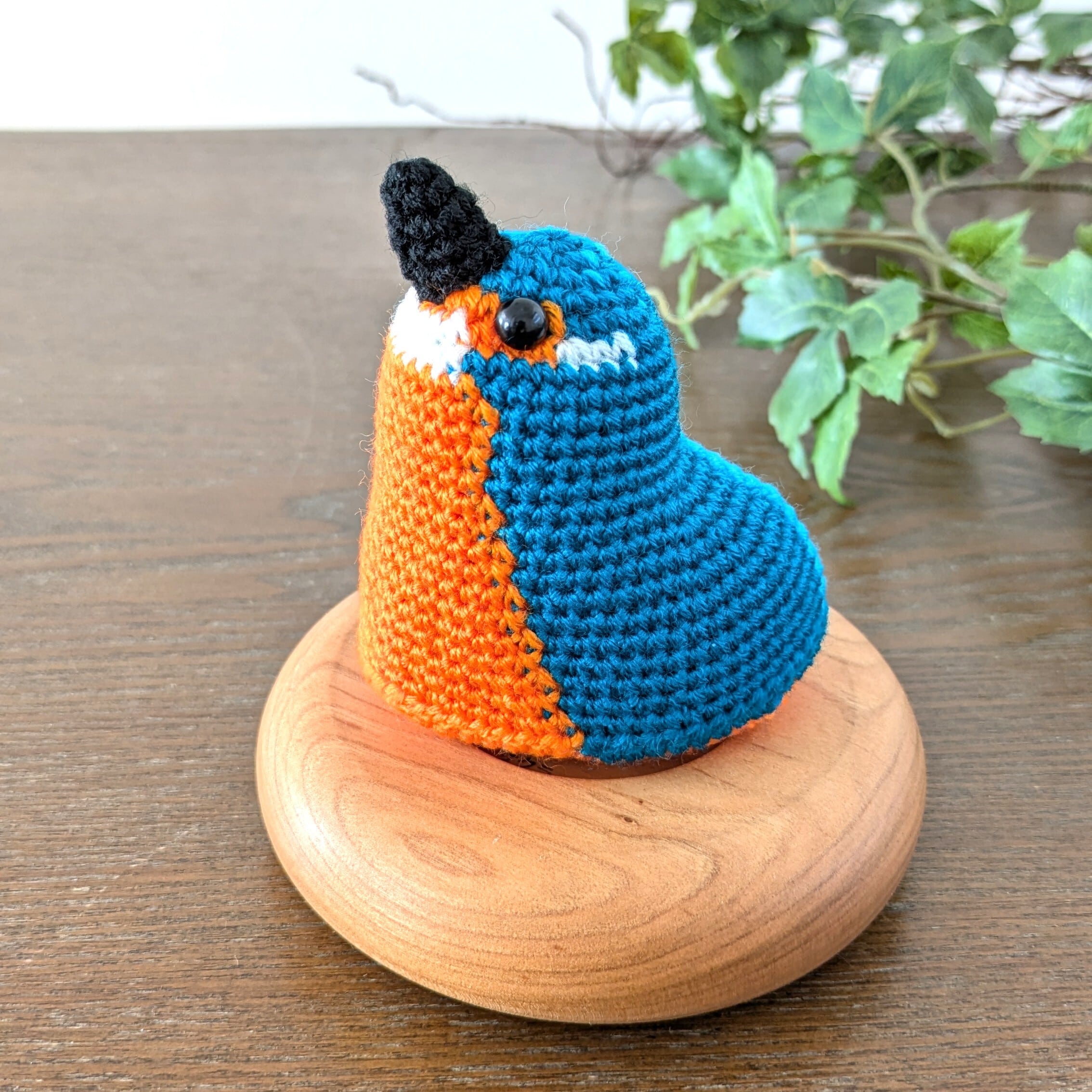手のひらサイズのあみぐるみ、カワセミです。