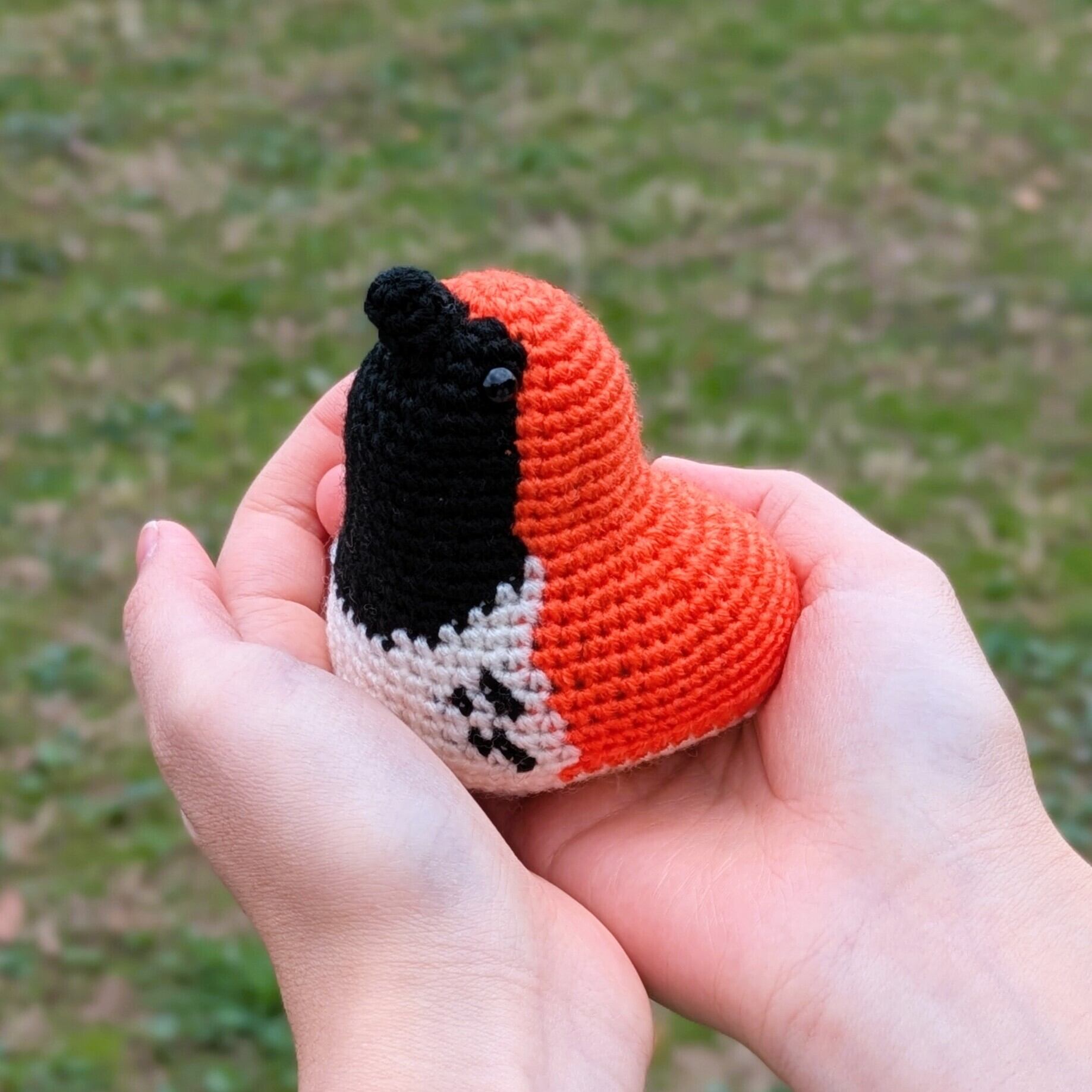 手のひらサイズのあみぐるみ、アカヒゲです。